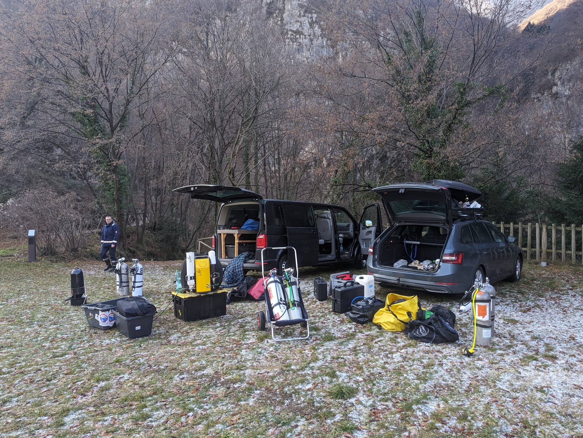 Die Berge in der norditalienischen Provinz von Vicenza beheimaten einige der imposantesten Höhlensysteme Europas, deren Anziehungskraft Höhlenforscher aus aller Welt in ihre Tiefen lockt. Die speläologischen Schätze dieser Region waren das Ziel eines ersten Ausfluges zusammen mit TDN und TCDM im August 2020, wo uns das Tauchen aufgrund schlechter Bedingungen damals leider weitgehend vorenthalten blieb.