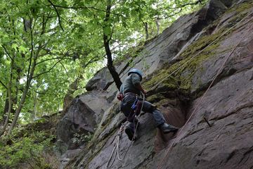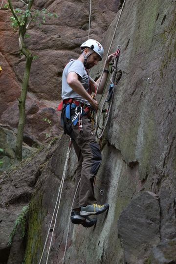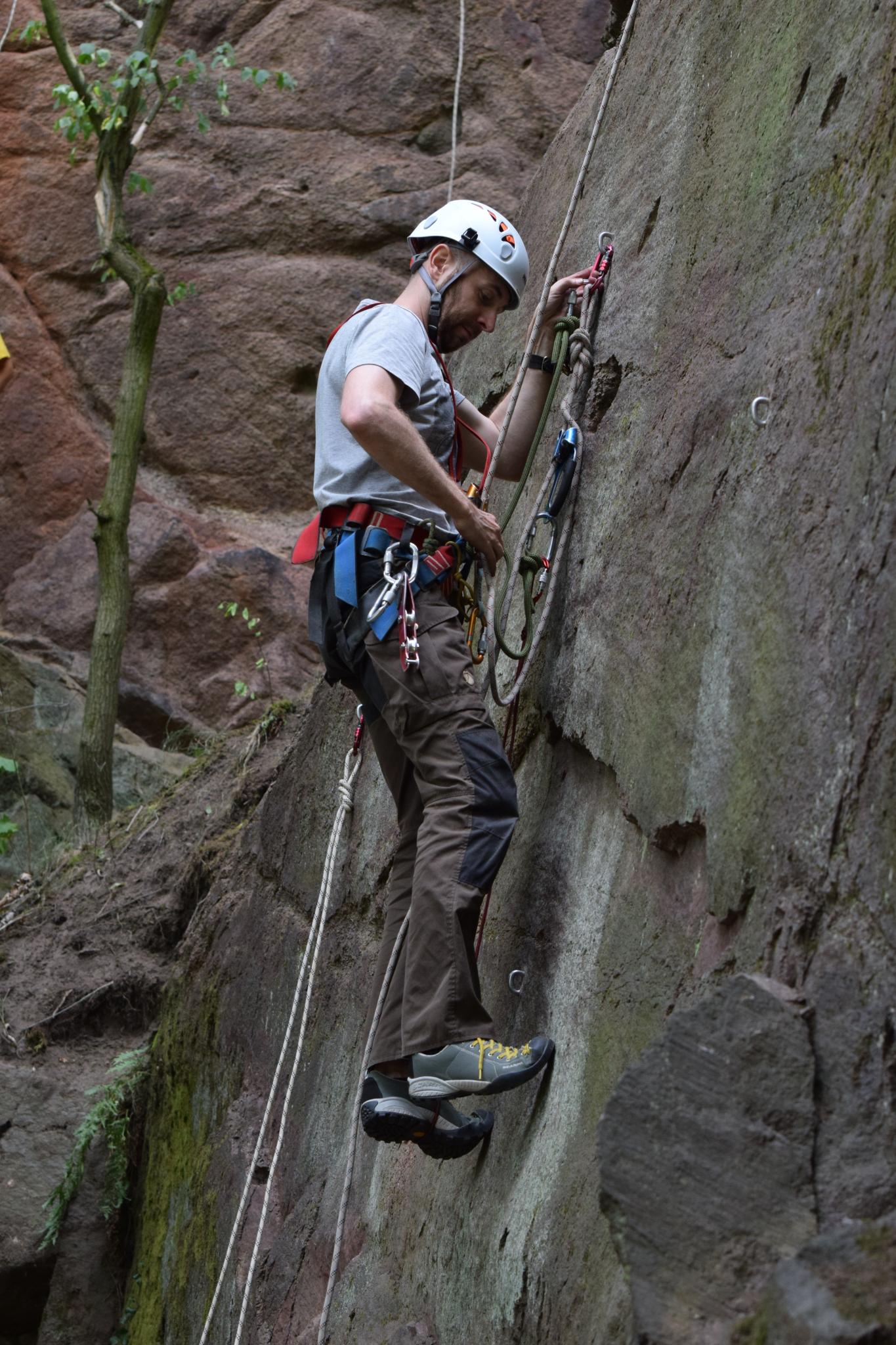 Am Sonntag haben wir uns in kleiner Gruppe an der Heidenschanze in Dresden getroffen, um Einseiltechnik unter Anleitung von Max & Lisa zu üben. Schwerpunkt war dieses Mal die Befahrung von Umstiegsstellen und Traversen sowie der Umgang mit Flaschenzügen.