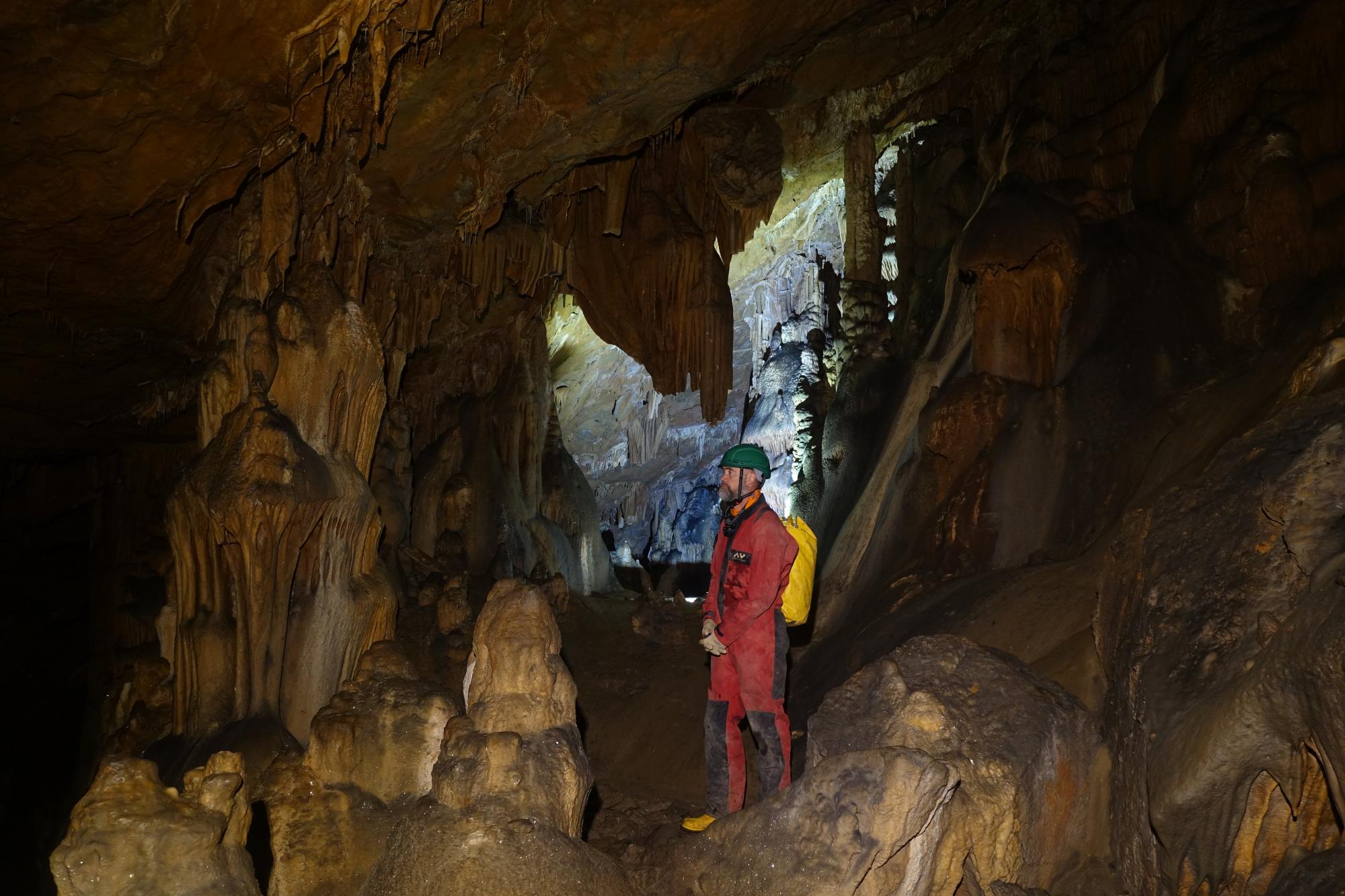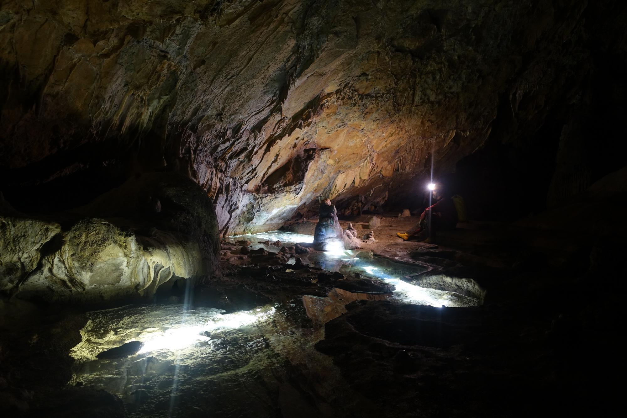 Ziel war die Grotta del Alce. Die Höhle besitzt zwei Schächte als Eingänge, wobei der östliche deutlich bequemer ist. Nach 1,5km Wanderung durch strömenden Regen mussten wir jedoch feststellen, das für die Plaketten Bolzen gesetzt waren. Was wir jedoch nicht fanden waren Muttern auf den Bolzen. Da 13er Muttern zur Tauchausrüstung gehören lag die Rettung der Befahrung im Auto. Also Kommando zurück und noch ein bisschen den Regen beim Wandern genießen. Aber schließlich lief die Befahrung wie am Schnürchen. Die Höhle hatte einige schöne Sinterformationen zu bieten und das Lichtspiel durch den zweiten Eingangsschacht war imposant.