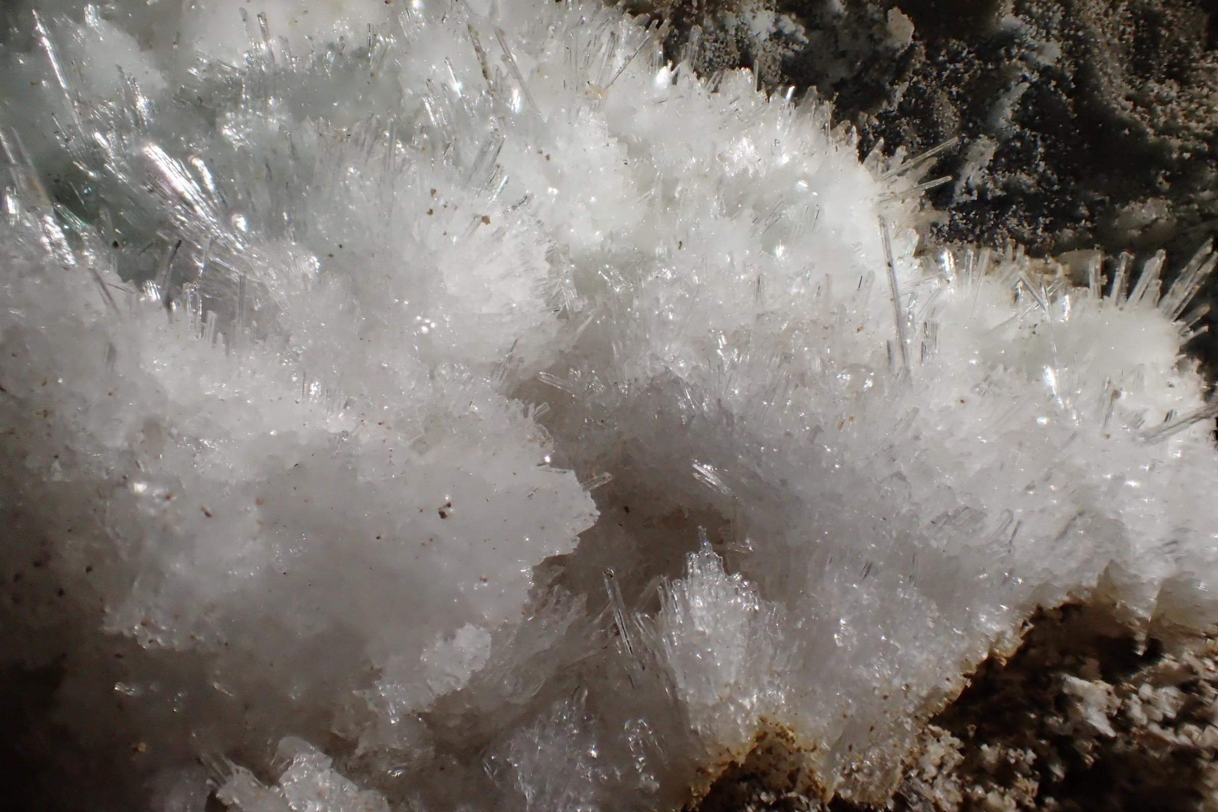 Am Dienstag soll es für Kermit, Lisa und mich in die Höhle „L1“ gehen. Der Auftrag: eine Schuppe am „Idioteneinsatz“ zu entfernen um dort weiter zu kommen. Ohne weiter über den Namen dieses Ganges nachzudenken machen wir uns auf den Weg. Neben dem „Rittersaal“, steigen wir in die „Minen von Moria“ und zur „Kondenstropfenröhre“. Leider haben wir Schwierigkeiten den Abstieg in den Idioteneinsatz zu finden. Von Norbert und Frank hieß es, dass wir dort einfach herabsteigen müssten, die von uns identifizierte Abstiegsstelle entpuppt sich jedoch als bauchig überhängende 4 m Stufe, bei der sich selbst Kermit als guter sächsischer Kletterer das Zurückklettern ohne Seil nicht vorstellen kann. Unverrichteter Dinge fahren wir wieder aus und beeilen uns noch vor einem Gewitterguss wieder in der Hütte zu sein. Im „Oberländer“ sind Norbert, Rebecca, Sven und Thilo leider auch nicht erfolgreich. Hier war ein bereits eingebautes Seil zu kurz und der „Mosaikboden“ konnte nicht erreicht werden. Zur Entschädigung konnten immerhin sehr feine Gipskristalle und Cave Blisters bestaunt werden. Das Wetter kann sich leider nicht mehr zusammenreißen und ein alpentypischer Gewitterguss sorgt für tropfnasse Höhlenforscher.